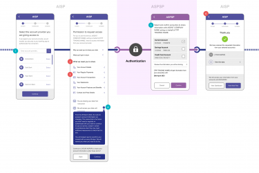 AIS Core Journeys Account Information Consent In this journey the AISP presents to the PSU a description of the data that it requires in order to support its service proposition. View journey AIS Access for PSUs from Corporate Entities In this journey, the AISP presents to the PSU a description of the data that it requires in order to support its service proposition. View journey Permissions & Data Clusters for AIS journeys In the Open Banking API design, data elements are logically grouped together into 'permissions'. OBL customer research found that grouping permissions together and adding another layer of description aided the PSU’s understanding of the data they were being asked to consent to share. View journey