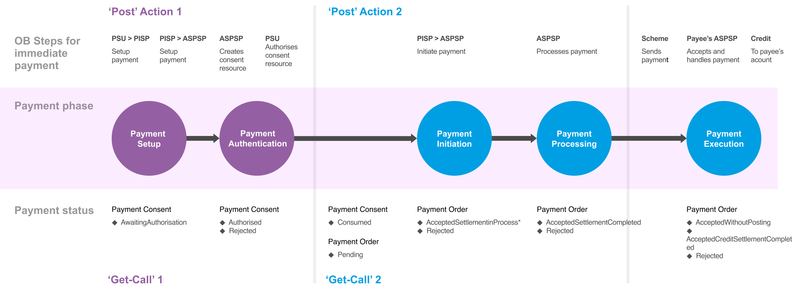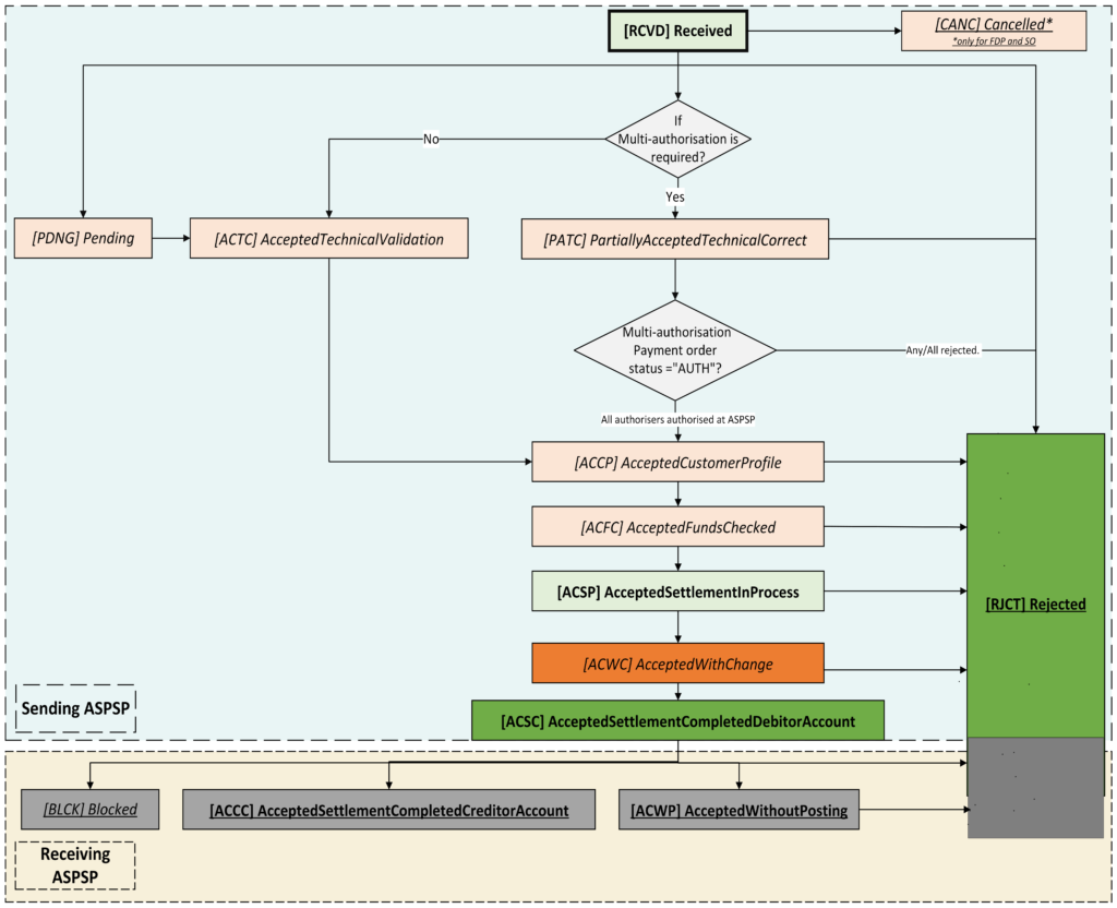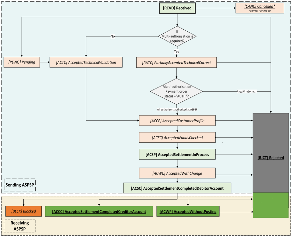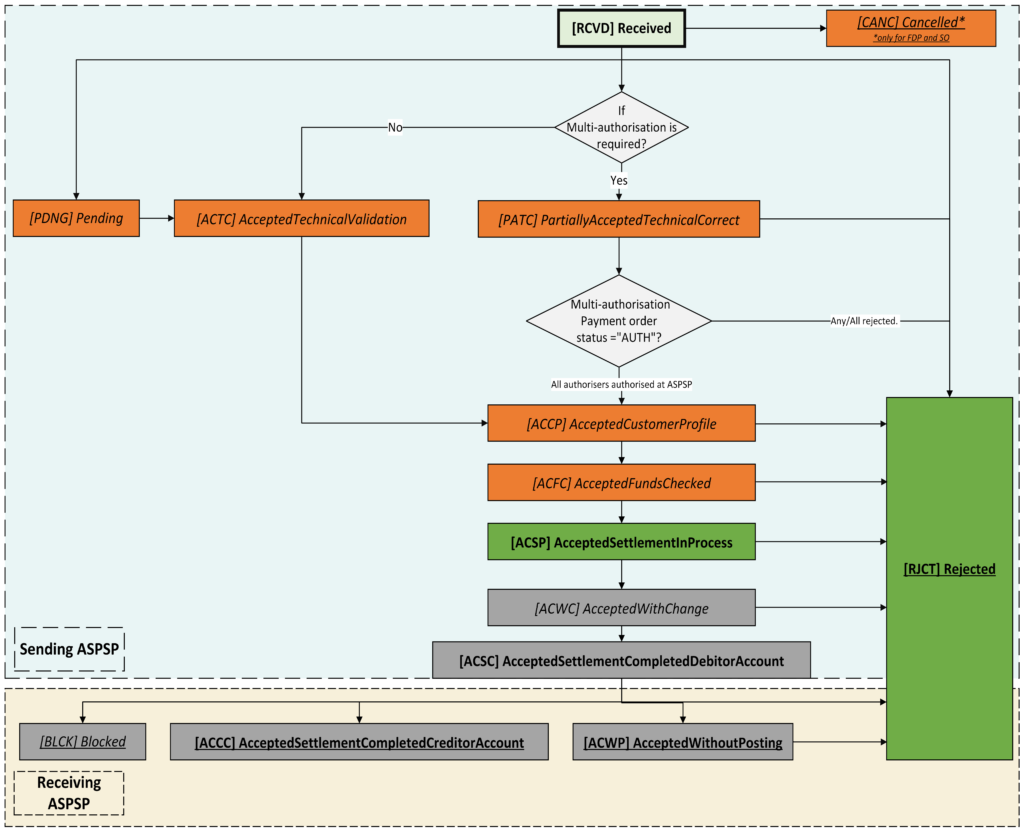 The Open Banking Standard has been updated to allow ASPSPs to provide PISPs with enhanced payment status information for supported payment types (as described in the User Journey section below) , including: Status any time after staging the payment and submission. Meaningful status messages and reasons why the staged payment or submitted payment is stuck in a particular state. Confirmation that the payment order has been received and executed. Enriched list of payment status messages and reasons for failures through the initiation, processing and execution stages. List of faster payment reasons for failure post execution at the receiving bank (other payment schemes not provided).
