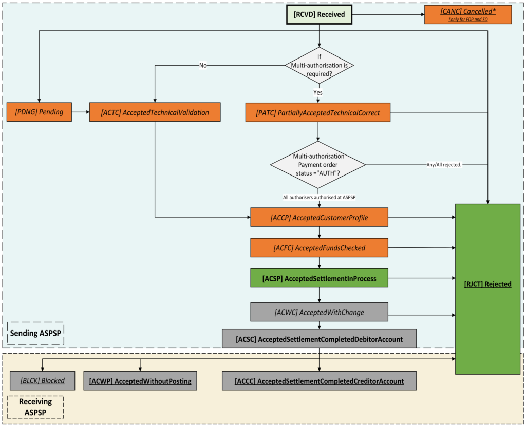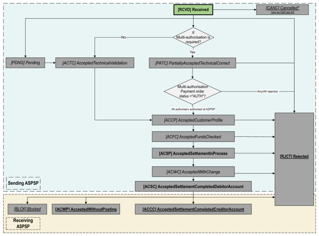 • ASPSP should also use the additional status ‘ACCP’ which means ‘Accepted Customer Profile’ when the customer profile checks have been completed.