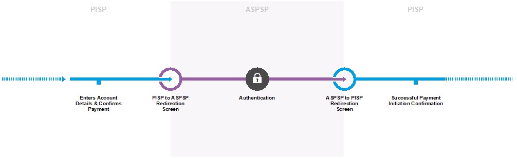 This redirection flow applies to other variations of PIS journeys covered in detail under section Payment Initiation Services (PIS).