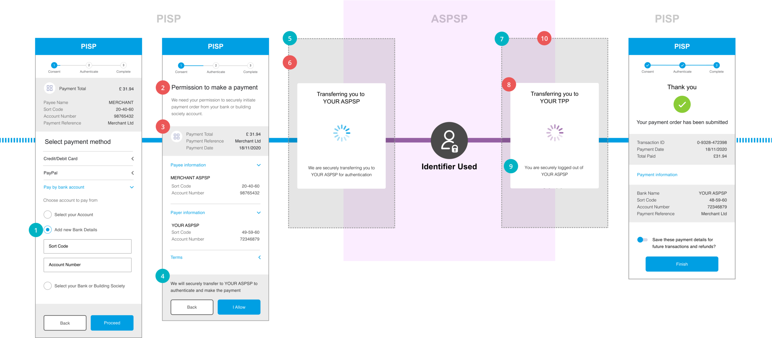 Example wording: ‘You will be securely transferred to YOUR ASPSP to authenticate and make the payment“.
