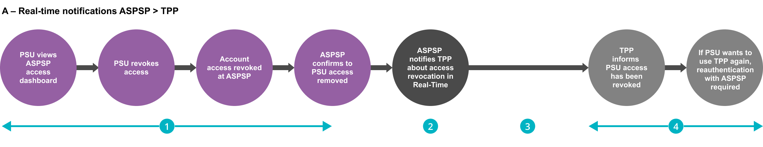 3. ’Real-time’ notification of the revocation is a system that triggers a message from ASPSP to TPP, or vice versa, immediately after the PSU revokes consent or access at the respective Dashboard.