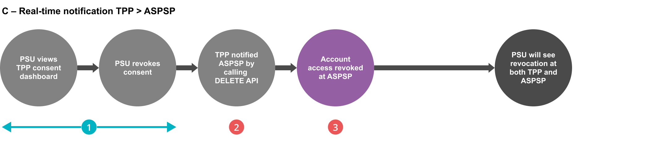 This functionality enables the TPP to notify the ASPSP in real-time (i.e., immediately) after the PSU revokes their consent at their TPP Consent Dashboard, provided that the TPP takes immediate action upon the PSU revocation. The current Open Banking Read/Write specifications enable a TPP to use the ‘DELETE’ API endpoint and notify the ASPSP that the PSU has revoked their consent. The implementation of the ‘DELETE’ API endpoint is mandatory for ASPSPs.