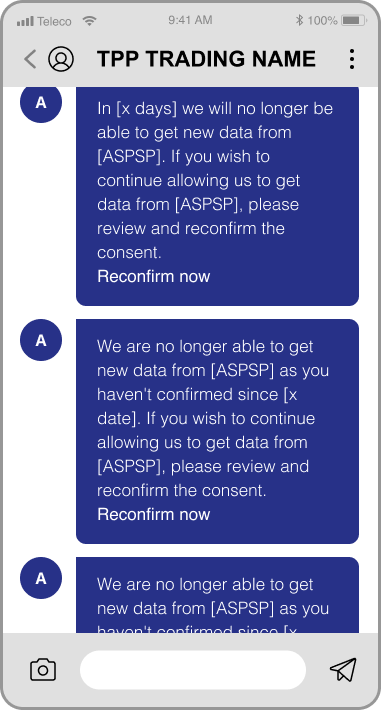 TPPs are already utilising these today and this can be done in a variety of ways. The most common approach seems to be an email, app notification or SMS with a link through to the Consent Dashboard.