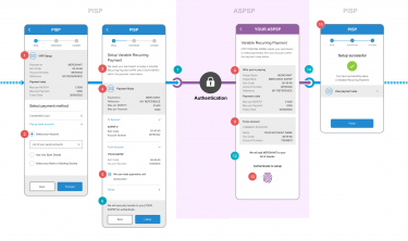 Variable Recurring Payments VRP Payments with SCA exemption VRP Payments instructed under a VRP Consent with Consent Parameters that qualify for an SCA Exemption such that, following successful VRP Consent Setup, subsequent individual VRP Payments can be made without further authorisation from the PSU. View journey VRP Payments under Sweeping Access VRP Payments under sweeping access are a subset of VRP payments with SCA exemption that also has additional constraints. View journey VRP Payments with delegated SCA VRP Payments initiated by a PISP that do not rely on the application of an SCA exemption by the ASPSP, but rather the application of delegated SCA to each individual VRP Payment. This provides explicit consent for each payment instruction, dynamically linking the amount and a payee, allowing for flexibility on the VRP Consent Parameters. View journey