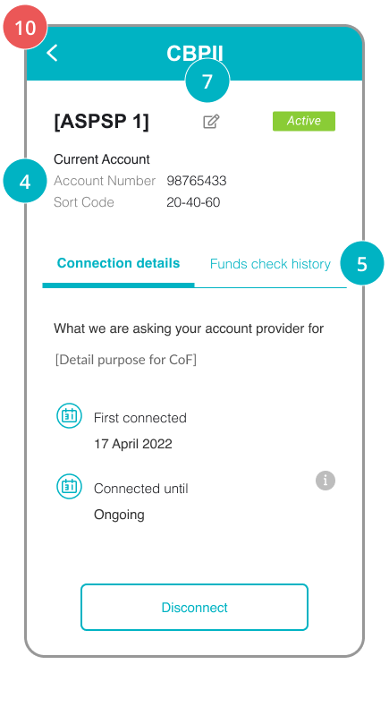 • Consent was given by the PSU to Consent was given by the PSU to the CBPII to make CoF requests from the PSU’s current account at ASPSP 2 on 05/04/2022. This is ongoing permission without a set expiry date i.e. the CBPII will be able to continue to make CoF requests until the PSU withdraws their consent at the CBPII or revokes access as ASPSP 2.