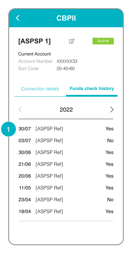 CBPIIs should make available a list of the CoF checks associated with each consent on the fund check history page.