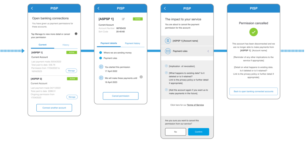 The Customer Experience Guidelines provide further guidance on Open Banking Ltd (OBL)’s expectations on ASPSPs (Access Dashboards) and TPPs (Consent Dashboards).